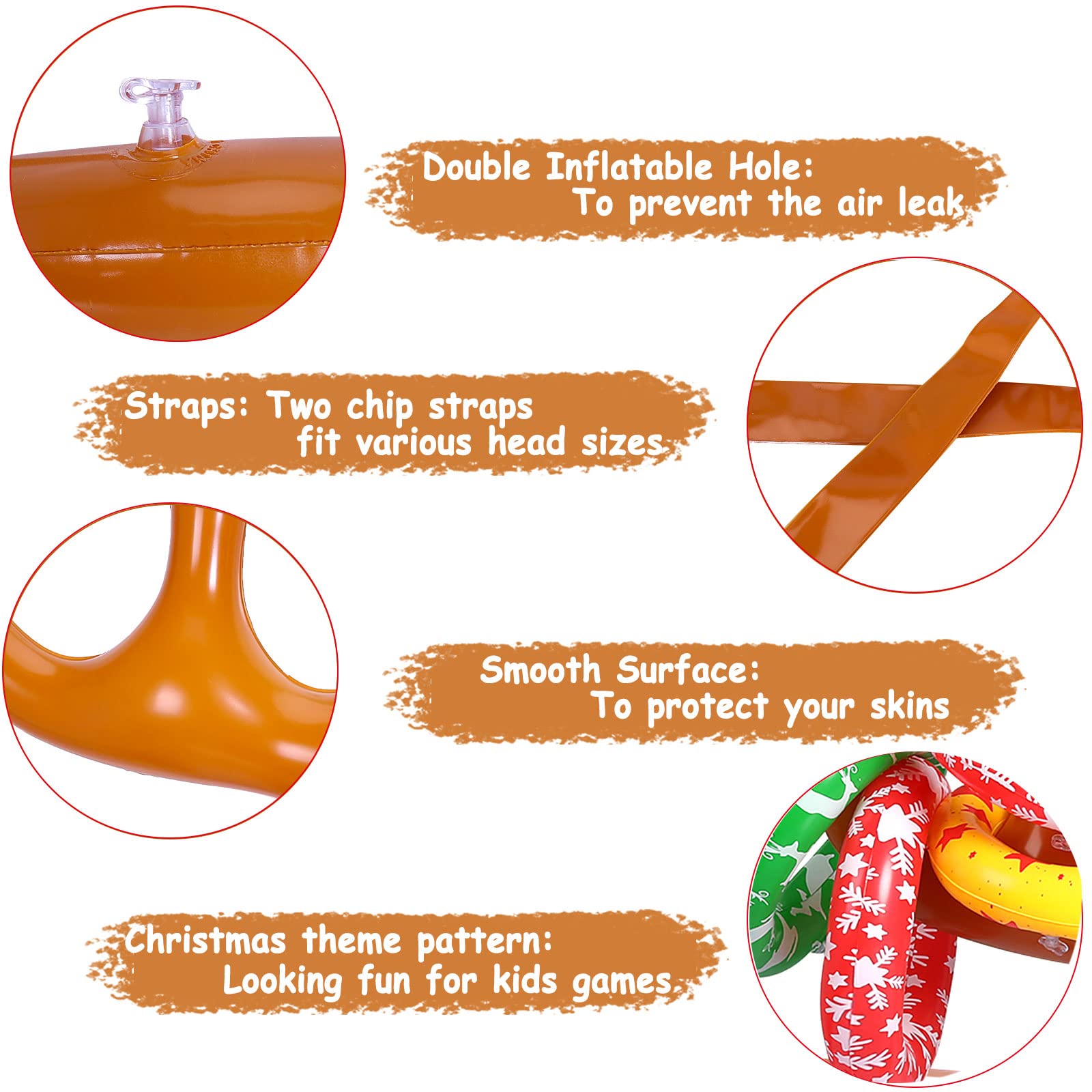 - Fun Kids Games for Your Family: The fun ring toss games set includes 12 Rings with 3 colors, 2 inflatable reindeer antlers and 1 Pump. Add fun to your Christmas holiday party favors with this inflatable ring toss games.